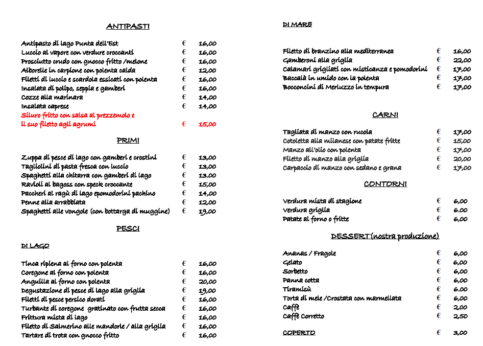 Tutto compreso € 37.00 a persona (bevande escluse).